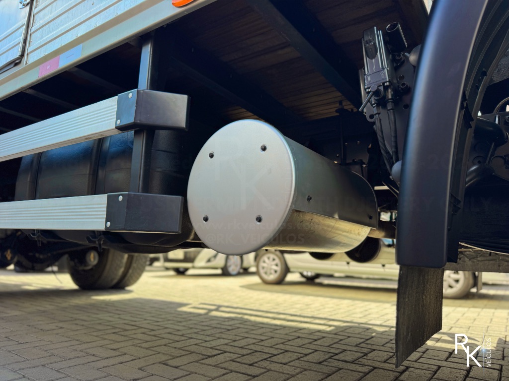 Equipado com baú seco / Duas portas laterais em cada lado / Dimensões do baú: 7,00 m de comprimento x 2,60 m de largura x 2,60 m de altura / Ideal para transporte de cargas volumosas / Excelente aproveitamento interno